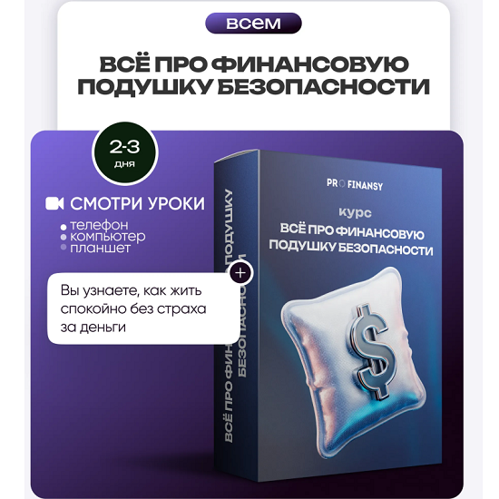 В курсе вы узнаете, зачем нужна финансовая подушка безопасности, от чего зависит ее оптимальный размер и как рассчитать его под свою ситуацию. Освоите простые и продвинутые стратегии накопления, разберетесь, какие инструменты подходят для хранения, а какие использовать не стоит. Получите практичные лайфхаки по формированию подушки, а задания к урокам превратят теорию в действие и помогут реально собрать ее в нужном размере.