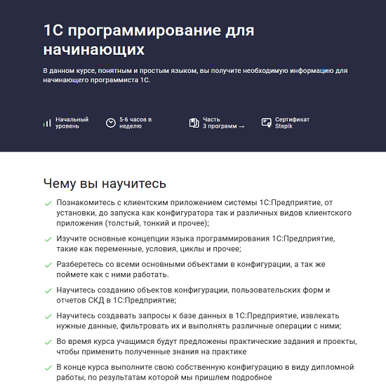 Для кого: курс рассчитан как для начинающих 1С разработчиков, так и для тех, кто совершенно ничего не знал про 1С до этого момента. Мы начинаем учиться с самых основ.