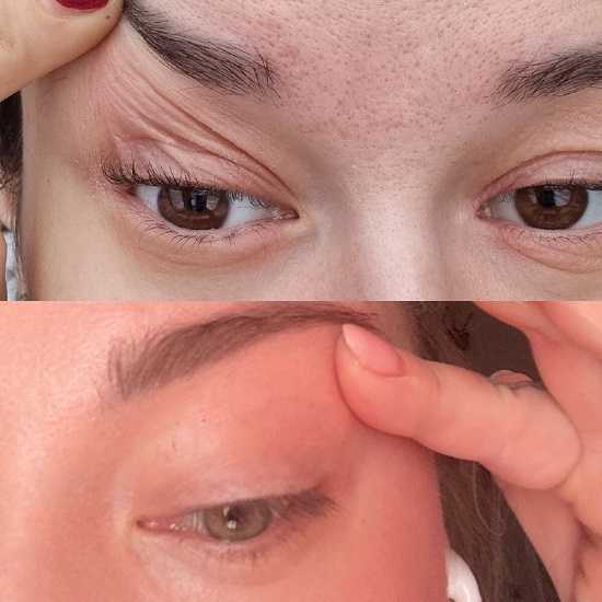 Сверху на фото — лицо женщины, которая моложе меня на 6 лет, внизу — моё. У неё дряблая кожа-марля и вислые веки. Это прямое следствие обезжириования рациона. И такая ужасная, рано постаревшая кожа — повально и повсеместно.